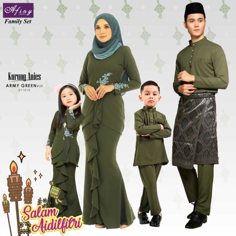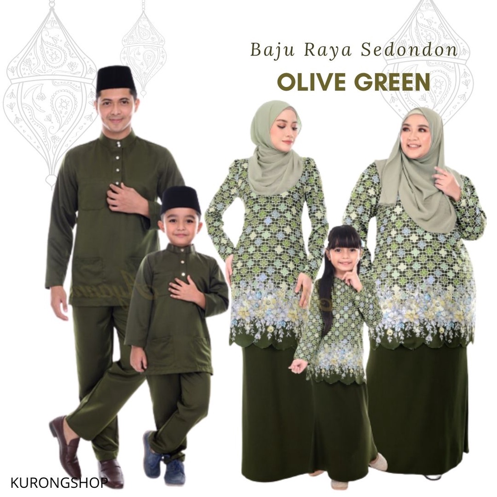Baju Raya Sedondon Tema Warna Olive Green Hijau Lumut Set Family Ayah Ibu Anak Baju Kurung Baju Melayu Kurta Rayafr Shopee Malaysia